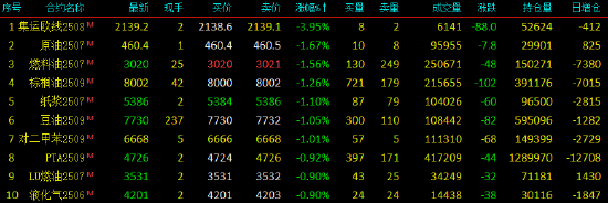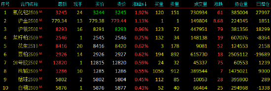 2025年5月22日,早盘开盘,国内期货主力合约涨跌互现,氧化铝、沪金涨超1%,豆粕、菜粕、豆二、20号胶涨近1%。跌幅方面,集运欧线跌超4%,SC原油跌超1%,纸浆、短纤、沪锌、PX0>对二甲苯、液化石油气(LPG)、PTA跌近1%。