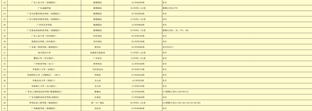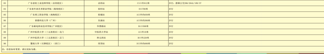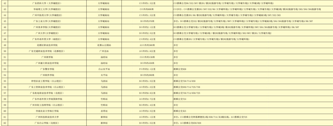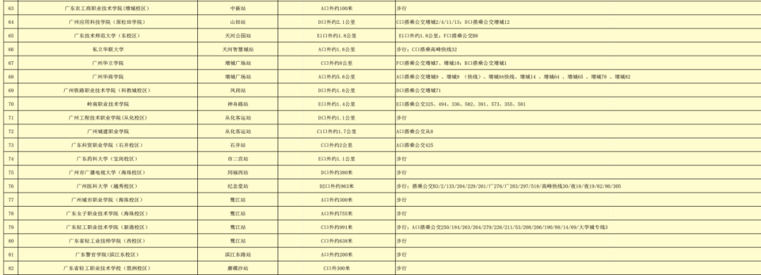 涵盖地铁沿线(部分)高校出行指引